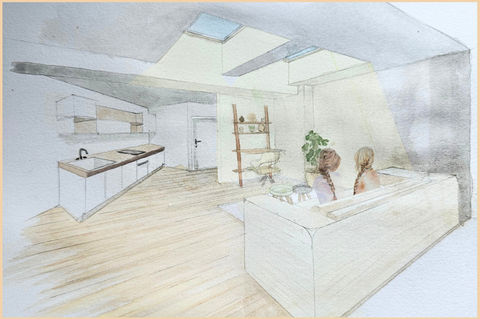 Je réalise le croquis de votre maison d'après les photos que vous m'avez envoyées, ainsi que votre récit détaillé.